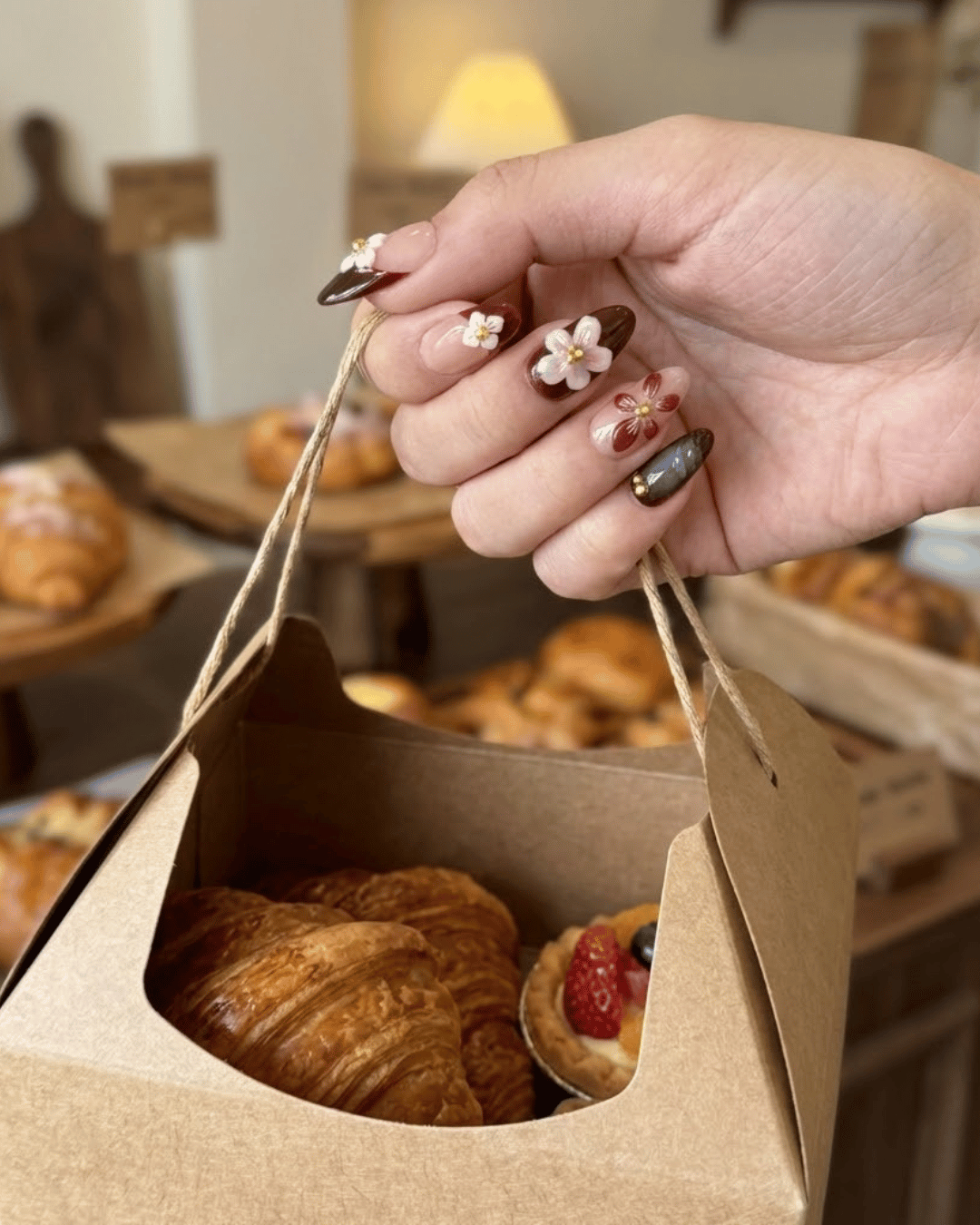 Perfect for fall outfits, evening looks, and anyone who loves elegant floral nails.