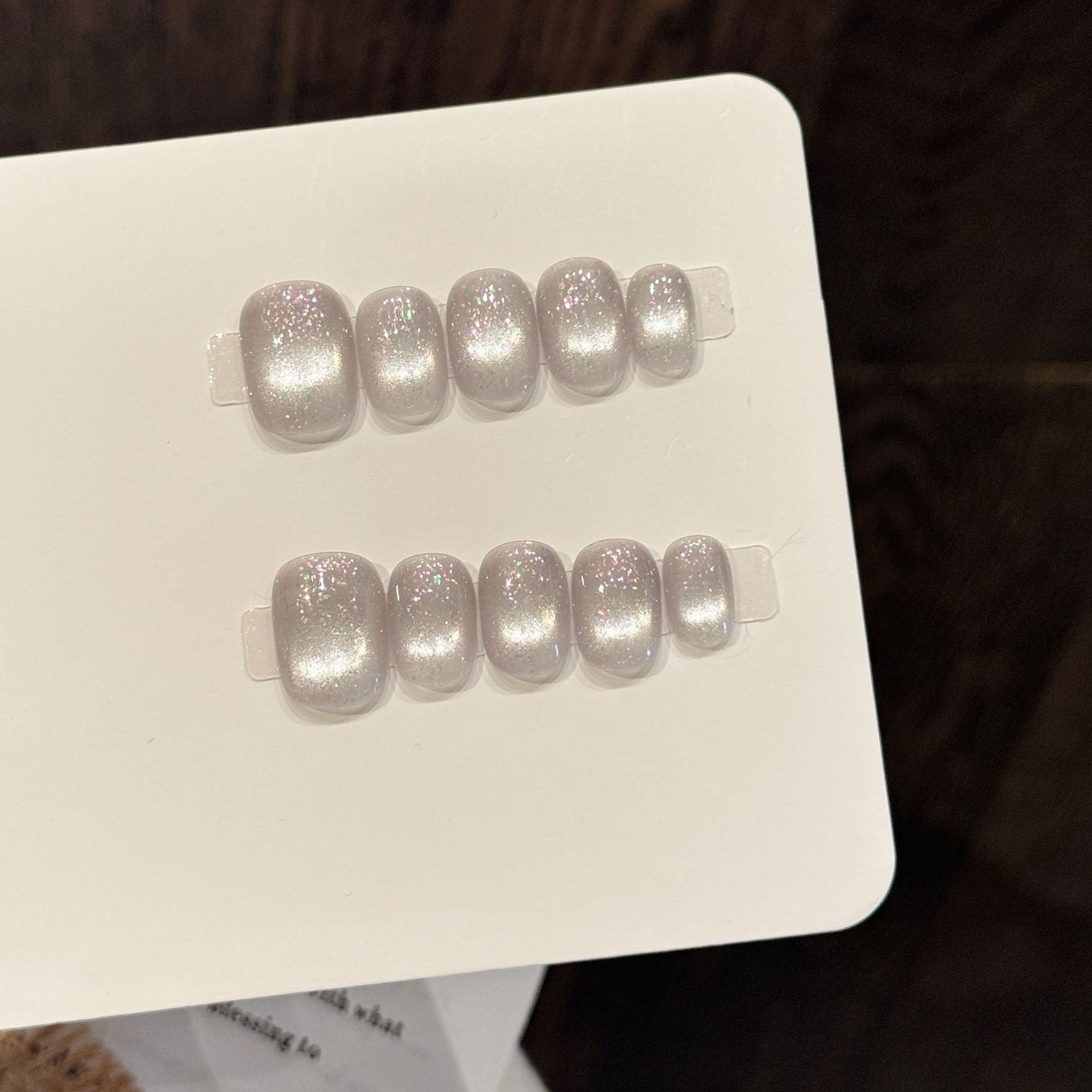 Elegant silver-gray gradient with star-flash shimmer. Soft shine, smooth texture, and a clean cold-tone finish. Perfect for daily wear, parties, and winter looks. Comfortable fit, durable, and handmade for a premium appearance.